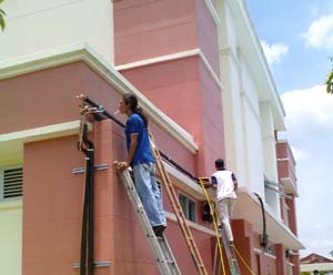 5.จะสังเกตุได้ว่าทีมงานการติดตั้ง นั้นจะมีอุปกรณ์อย่าง น้อยสองชุด เพื่องานที่รวดเร็ว
