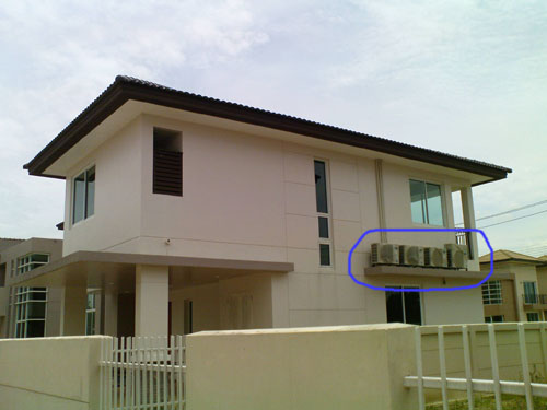 ลักษณะการวางตำแหน่ง Condensing บ้านหลังใหญ่จะไว้ด้านหลังทั้งหมด เพื่อความสวยงามของตัวบ้าน |